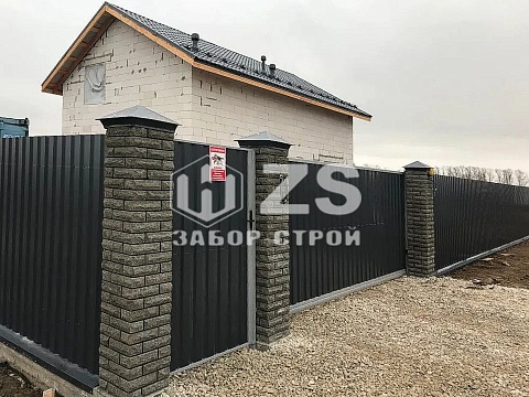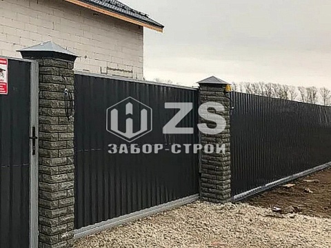 - Забор из профнастила с кирпичными столбами 6 соток