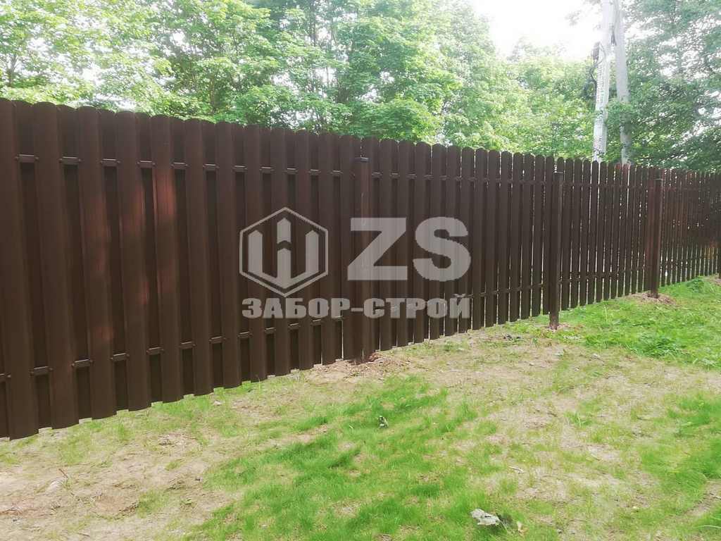 - Забор на столбах с утрамбовкой щебня из евроштакетника 45 метров