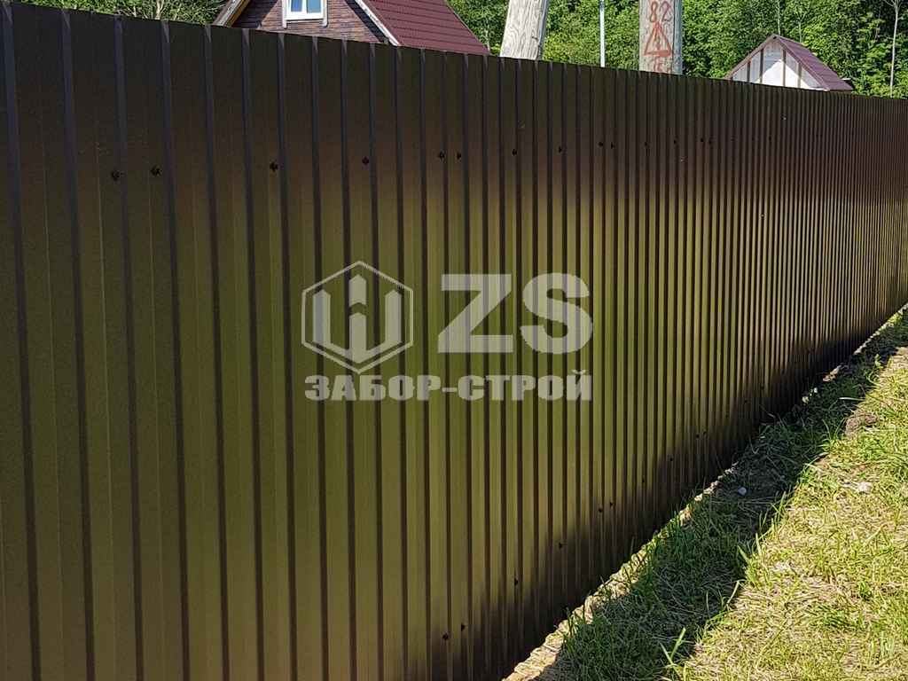 - Забор на столбах с утрамбовкой щебня из профнастила 20 метров