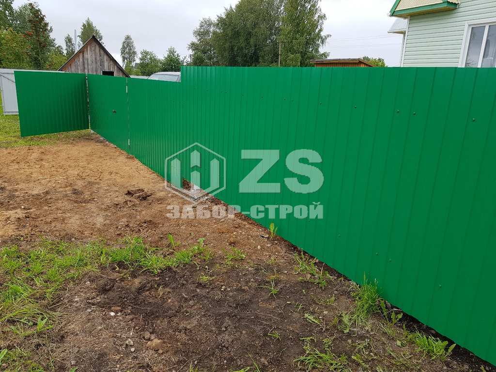 - Забор с бетонированием столбов из профнастила 15 метров